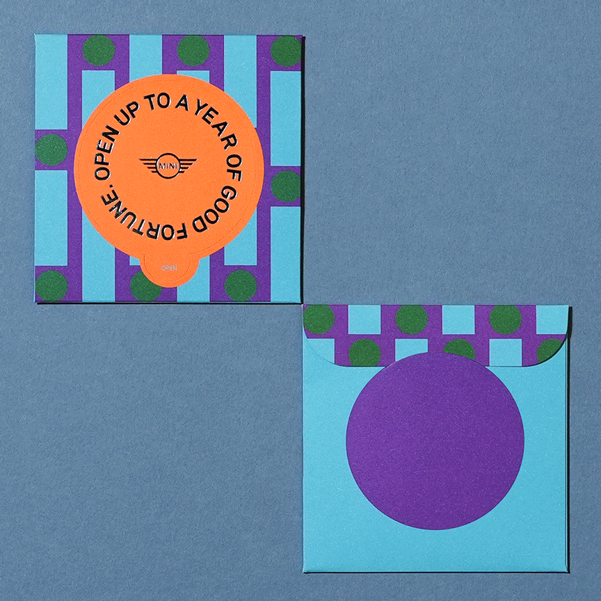 We designed a set of six angbaos that were inspired by the MINI Convertible’s defining feature: its open-top. Besides the usual flap on the back of the packet, receivers can peel off the “roof” of the packet to reveal a celebratory message.