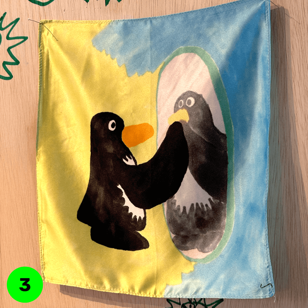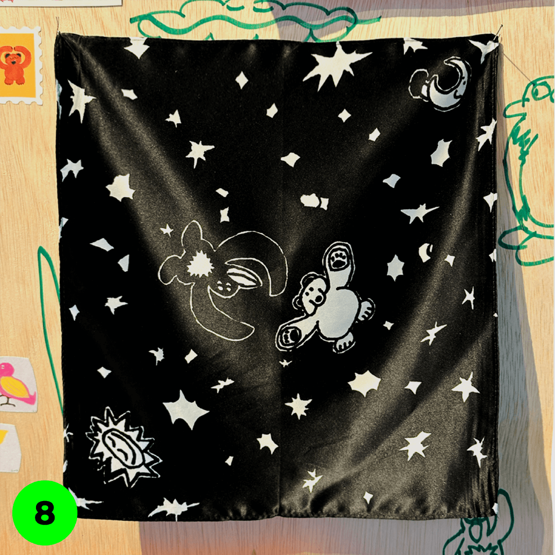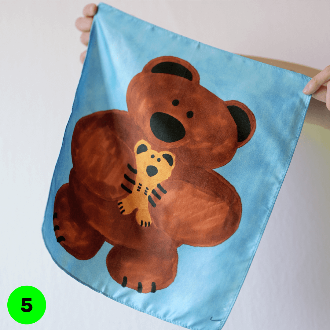 A pocket-sized gift, perfect for yourself or your friends. These handkerchiefs feature Daisuke Kondo’s whimsical characters and are printed on both sides. Made of silk and measures 30x30cm. Choose from 8 designs.
